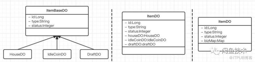 第一种是继承型结构,该结构不适用于业务叠加的情况。另外主干需要知晓各个业务的DO,每次业务修改或新增,主干都需要做变动。