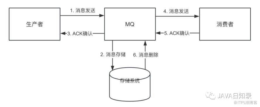 生产者发送消息MQ收到消息并将数据持久化,在存储中新增一条记录返回ACK给生产者MQ 推送消息给对应的消费者,等待消费者返回ACK如果消费者在指定时间内成功返回ACK,那么MQ则认为消费成功,执行第6步删除消息,如果MQ在指定时间内没有收到ACK,则认为消息消费失败,会重新推送消息,重复执行第4、云服务器5、6步操作。删除消息。